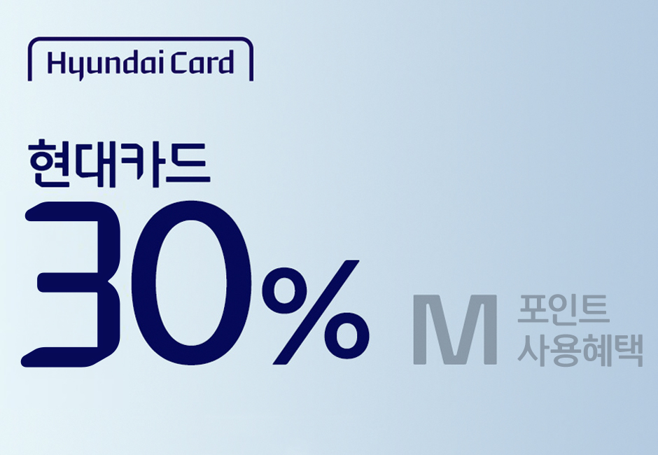 · M포인트 적립 및 사용 가능한 모든 현대카드(법인 · Gift 카드 제외)로 결제 시 30% M포인트 사용 가능