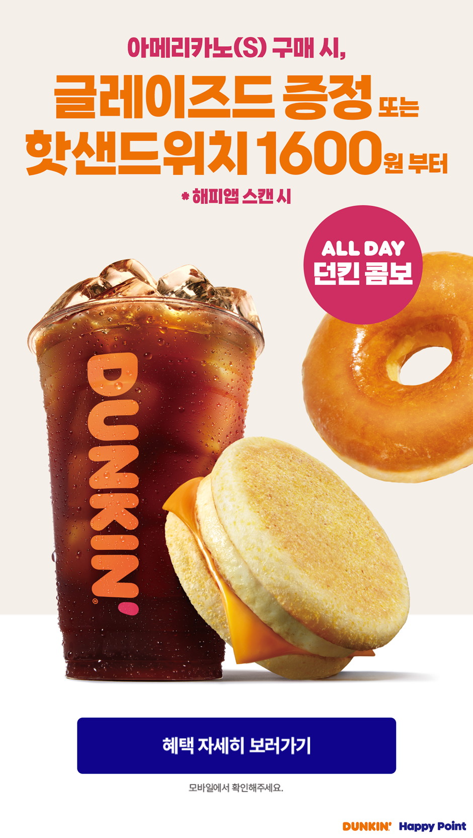 . 던킨콤보는 아메리카노(S)와 페이머스 글레이즈드로 구성됨
