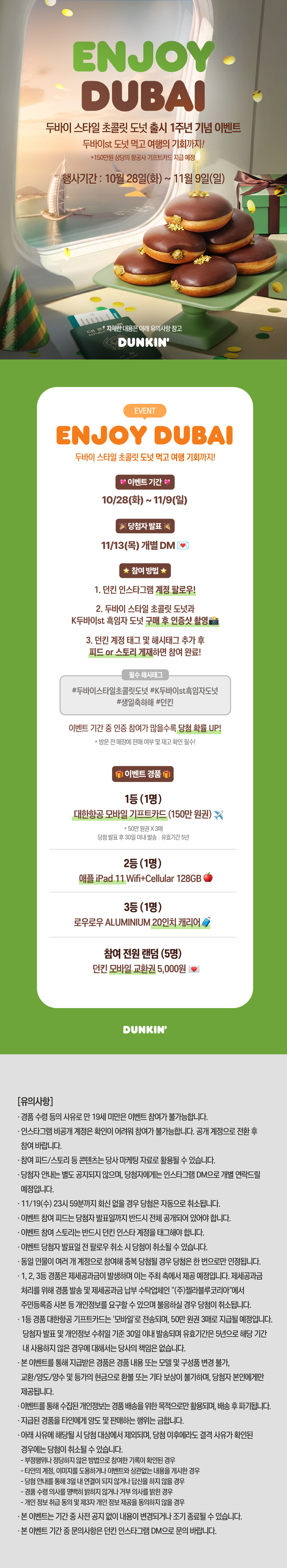 던킨 인스타그램 'ENJOY DUBAI' 이벤트 참여 안내