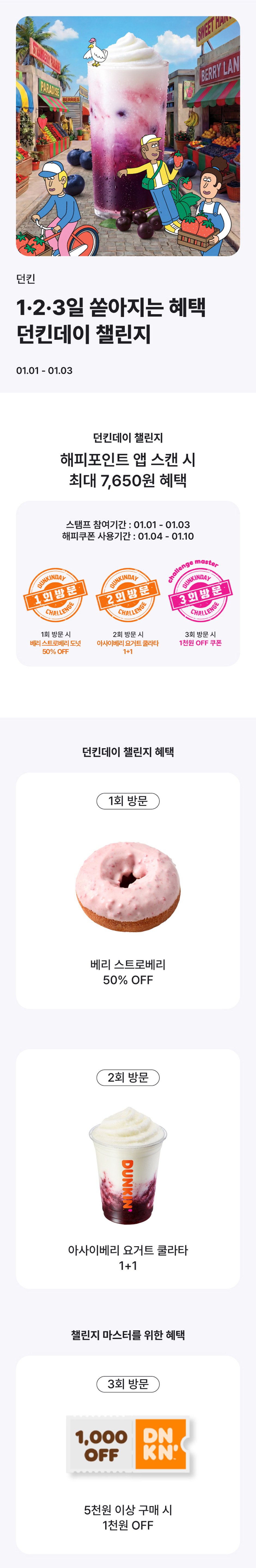 1) 던킨데이에 매장에서 5천원 이상 결제