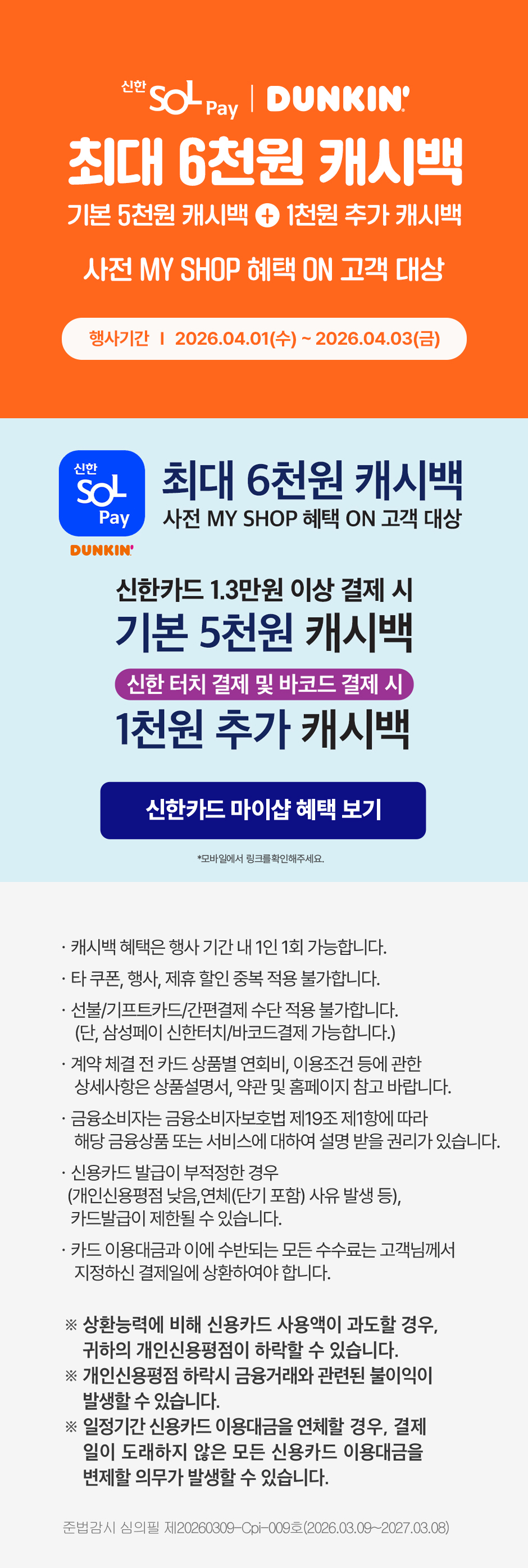 . 선불/기프트카드/간편 결제 수단 적용 불가합니다. (단, 삼성페이, 신한 터치/바코드결제 가능합니다.)