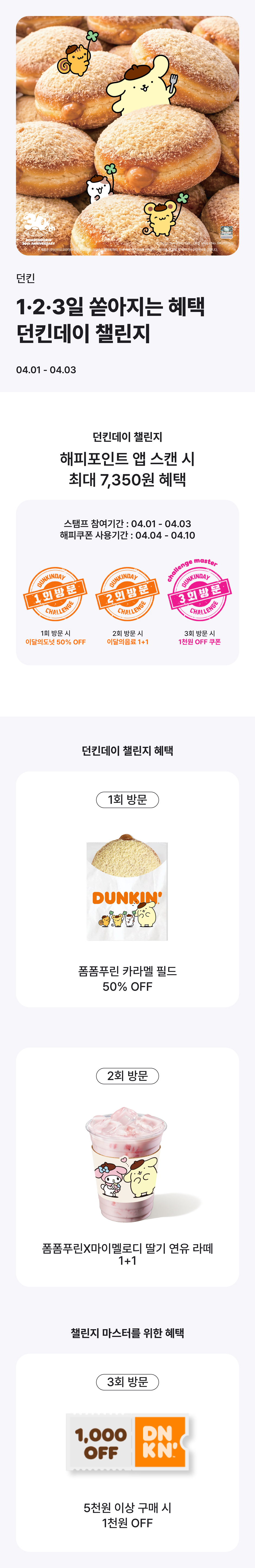 . 자세한 참여 방법 및 유의사항은 해피포인트앱 던킨데이 챌린지 이벤트 페이지 확인